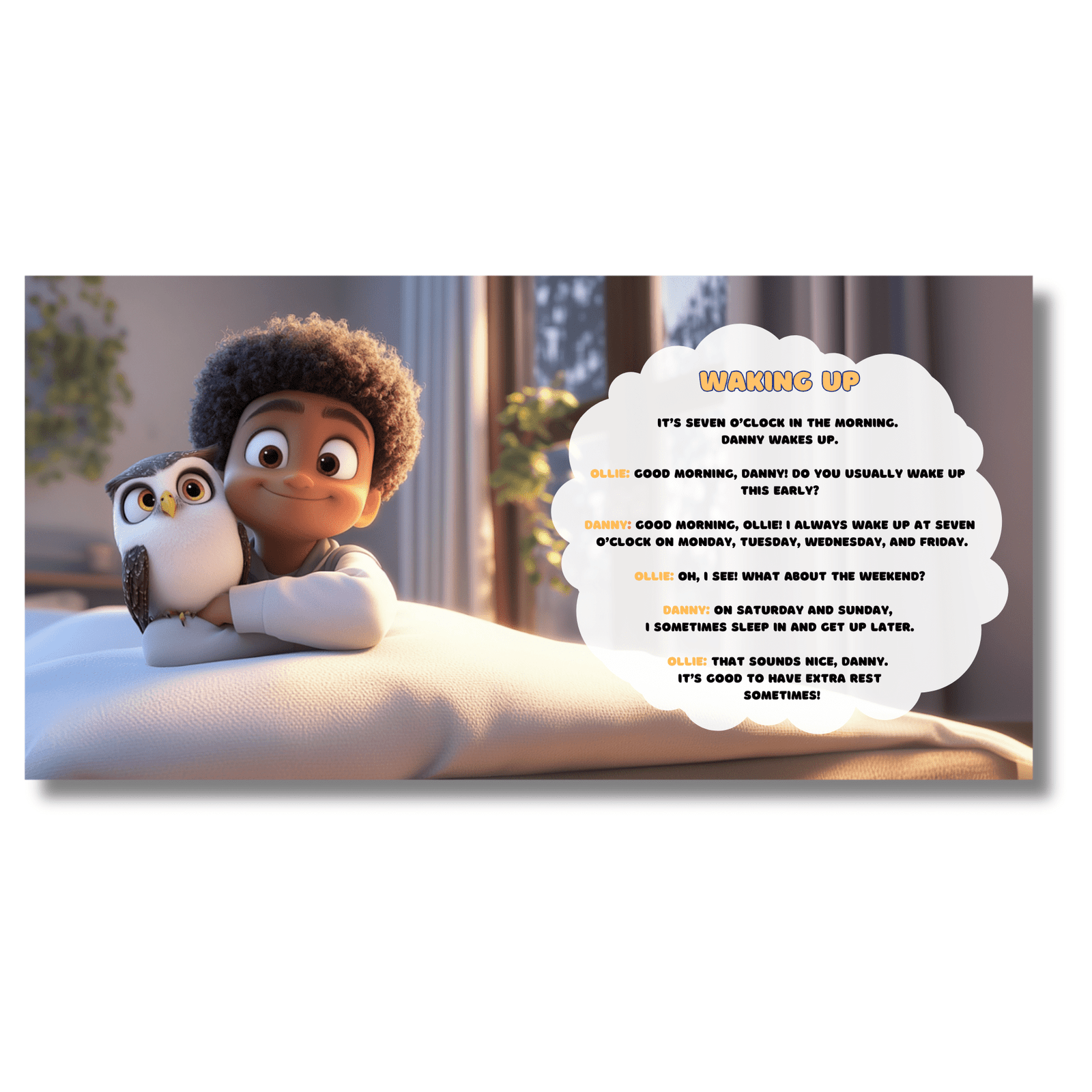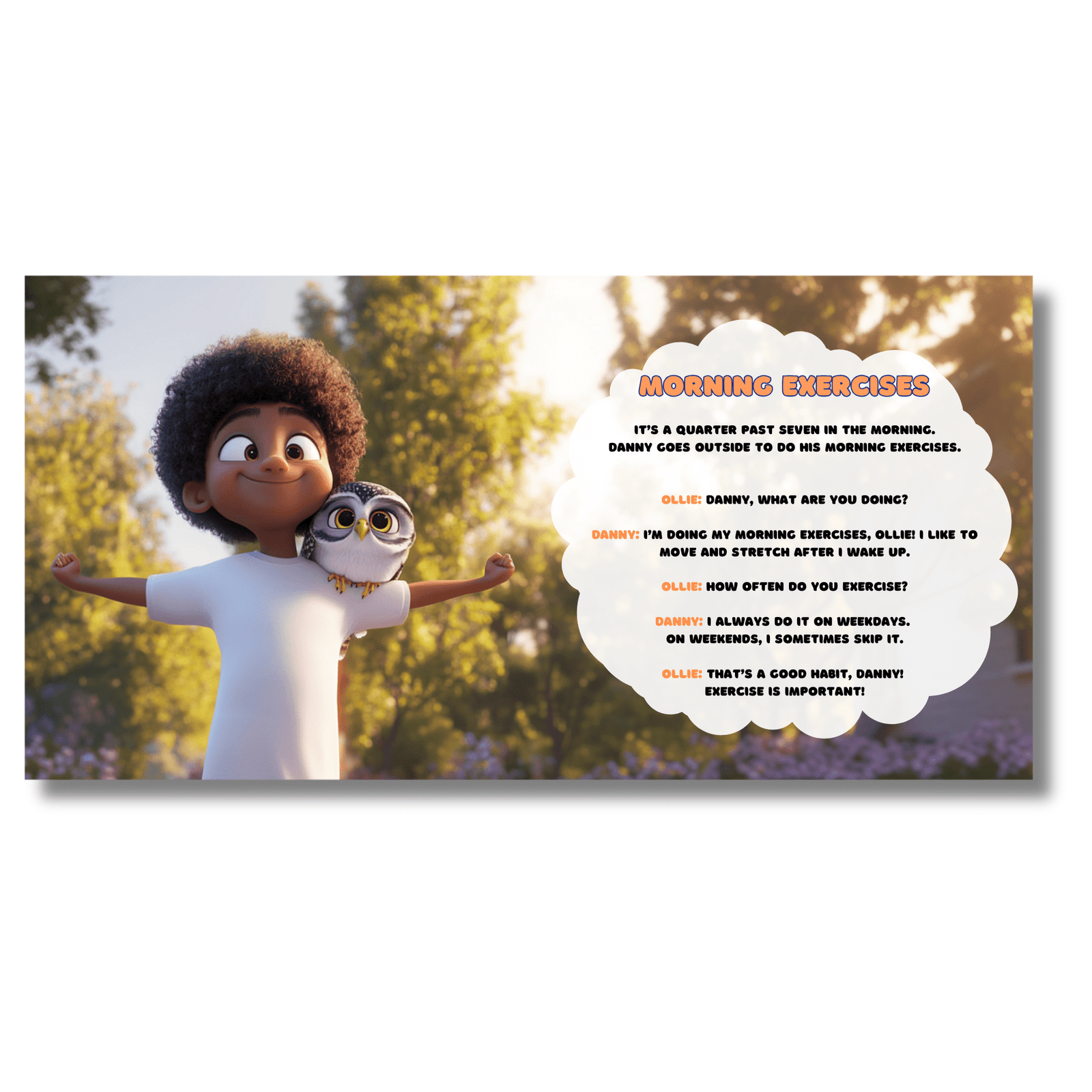 The storybook “Danny's Daily Routine” introduces key grammar and vocabulary in a fun, engaging way, while the workbook provides hands-on activities to reinforce learning.