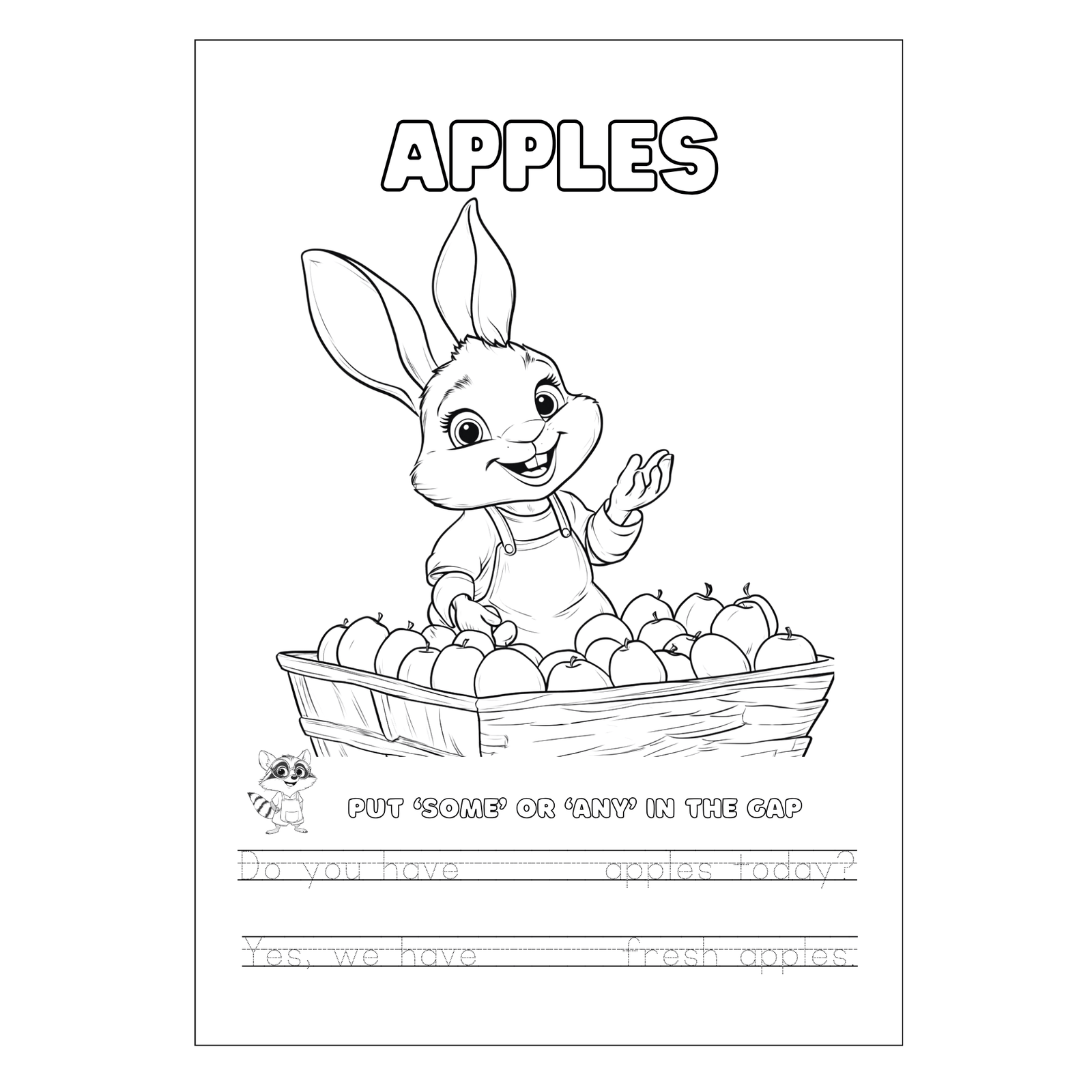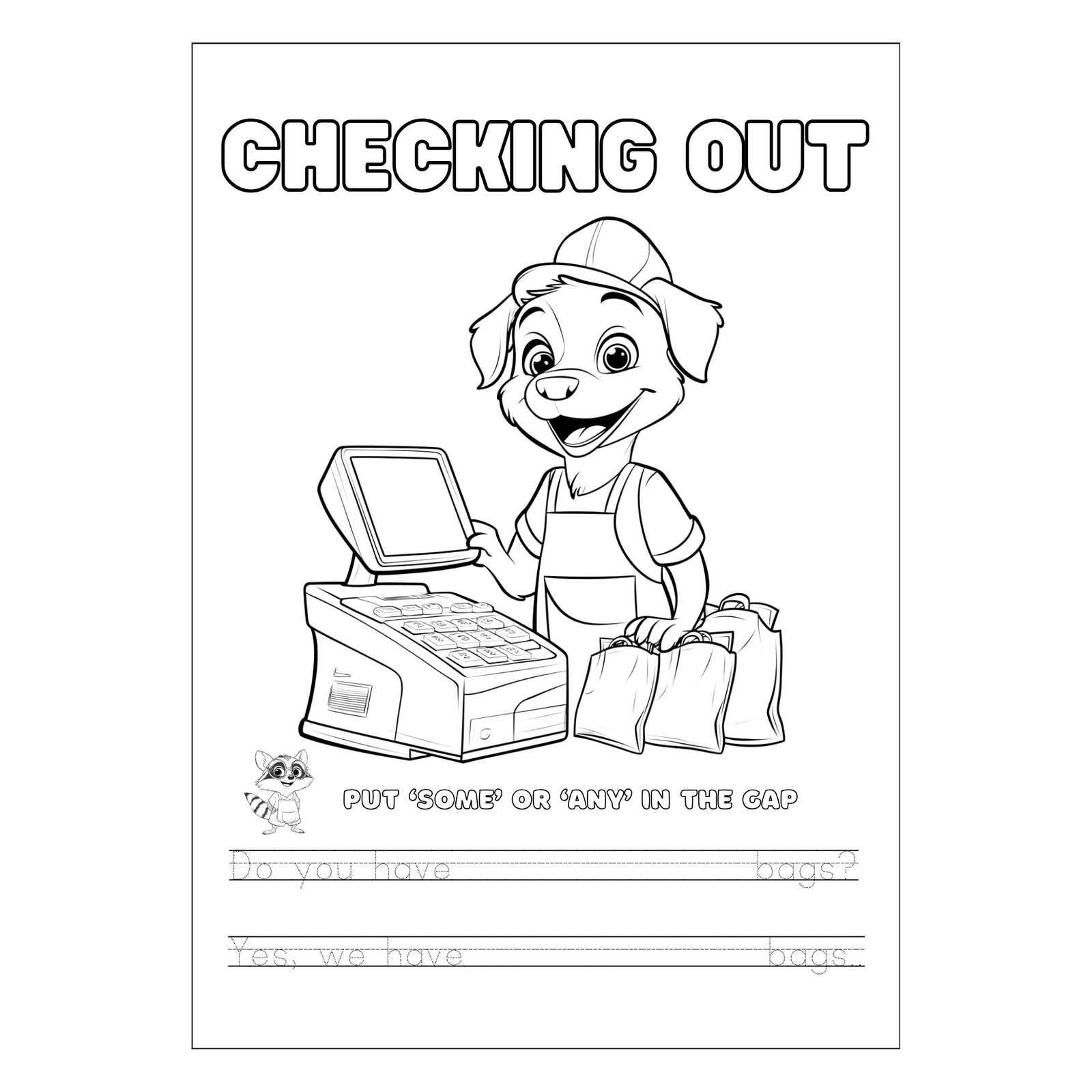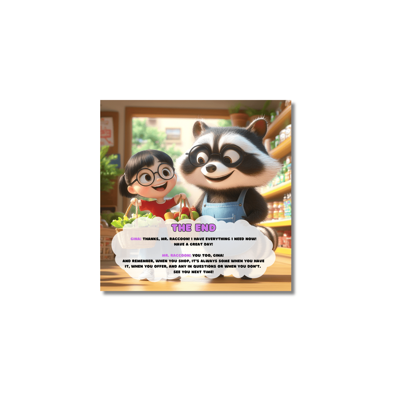 The storybook “Gina’s Grocery Shopping” introduces key grammar and vocabulary in a fun, engaging way, while the workbook provides hands-on activities to reinforce learning.